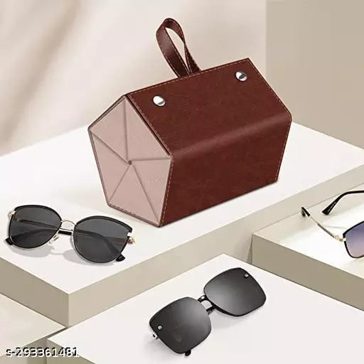 1 x Estojo de Couro para Armazenamento de Múltiplos Óculos