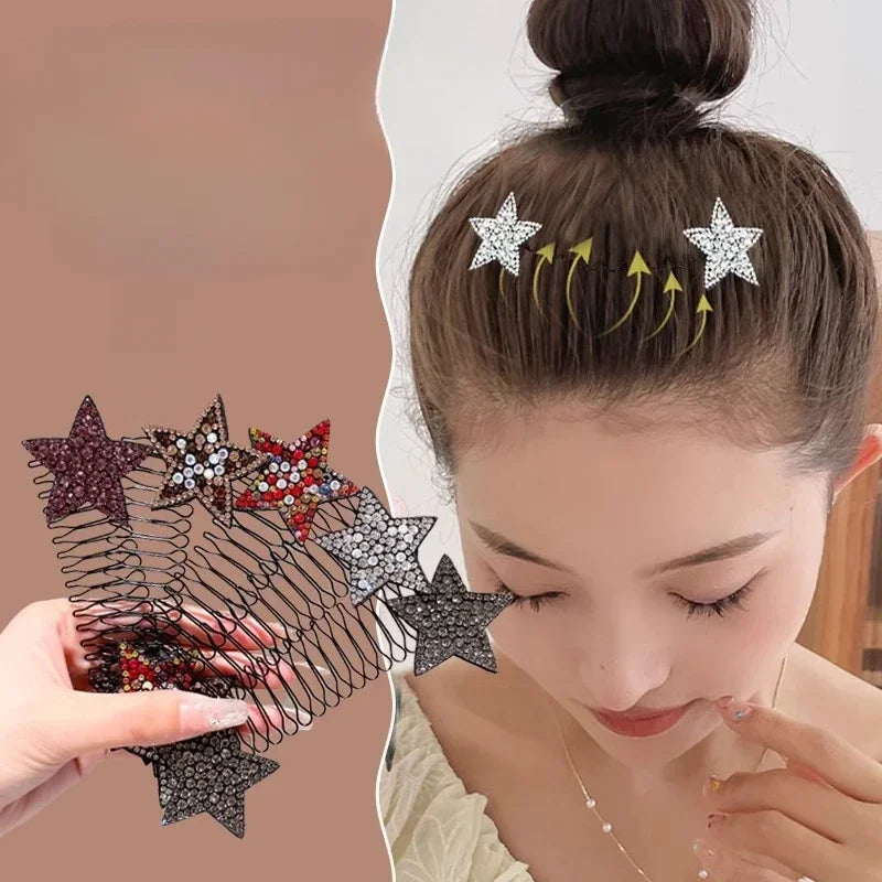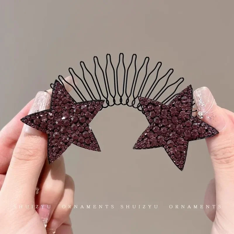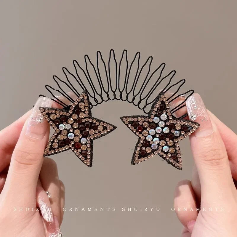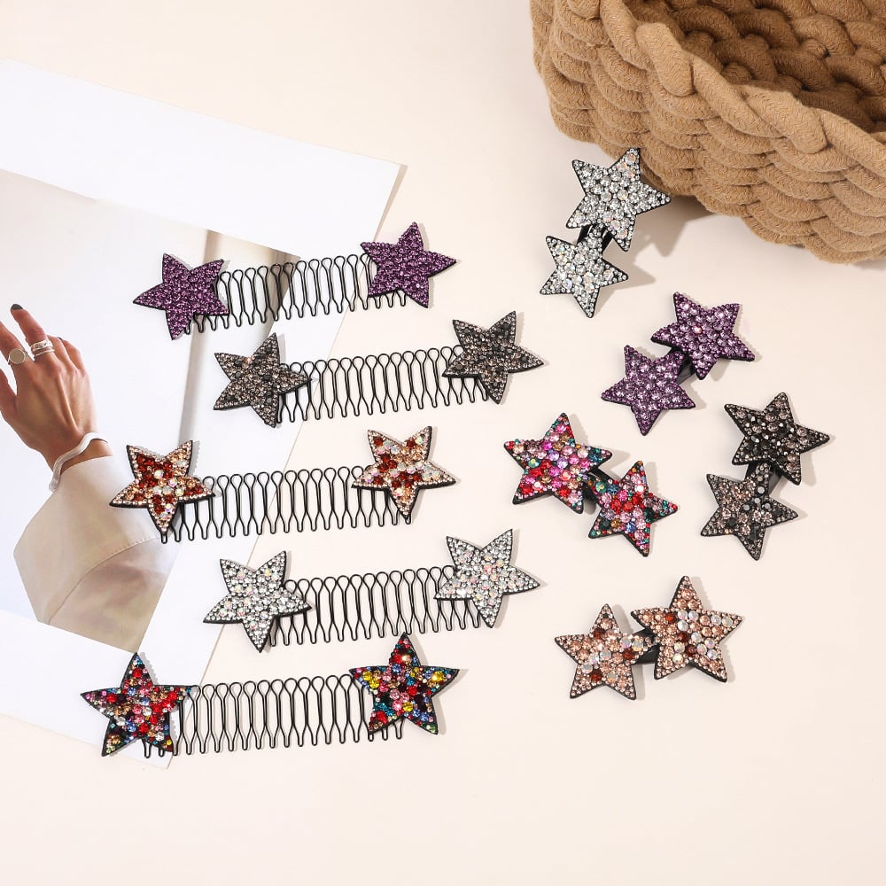 Strass brilhantes em formato de estrela adicionam charme ao penteado.